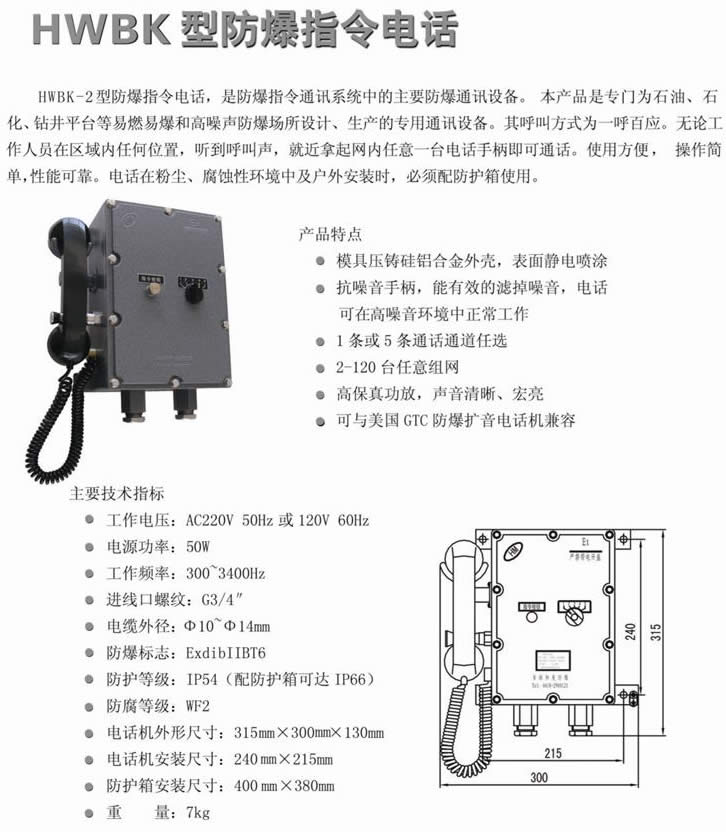 >> HWBK型防爆指令電話