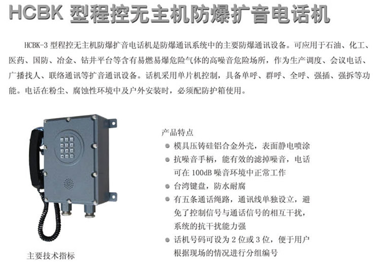 >> HCBK程控?zé)o主機防爆擴音電話
